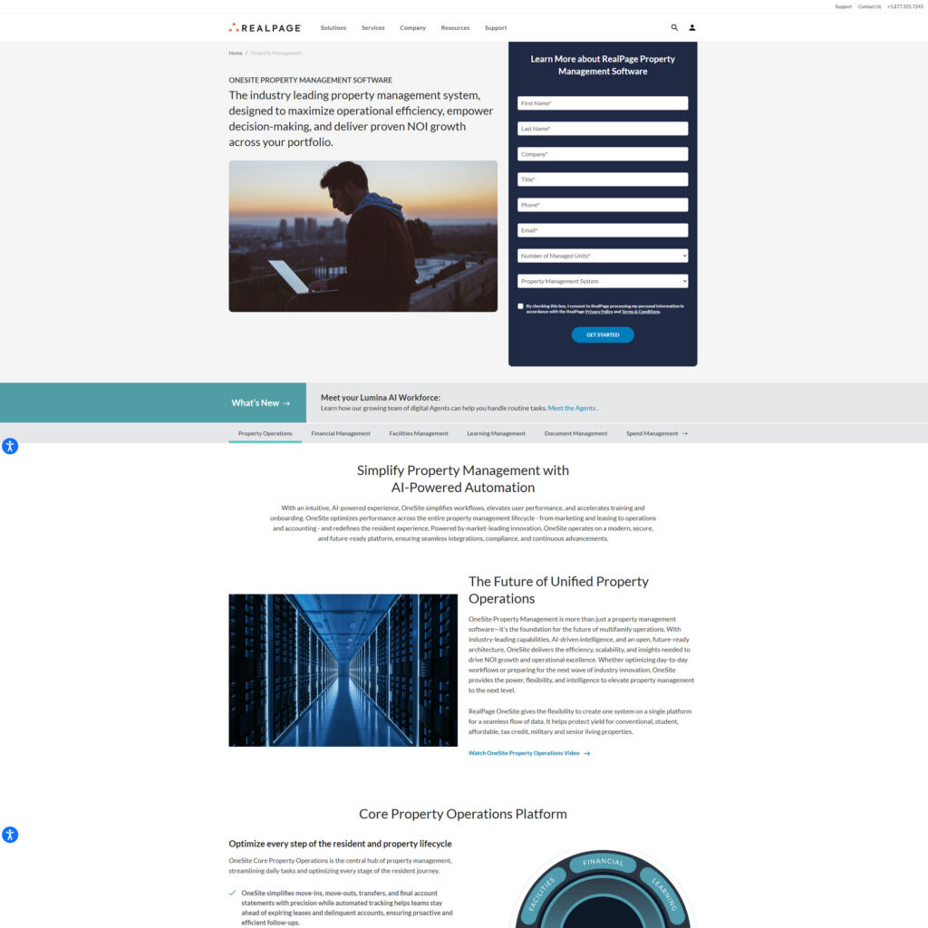 RealPage built its reputation on data intelligence. OneSite is the property management platform, but the real differentiator is the analytics layer sitting on top of it. AI revenue management, portfolio-level performance dashboards, and reporting depth that goes beyond what most other platforms offer.